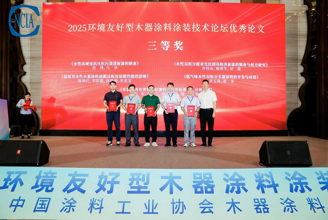 大會還對代表著環境友好型木器涂料涂裝最前沿研究成果的優秀論文作者頒發了證書。經初評、終評綜合評定,最終評出:一等獎:1篇;二等獎3篇;三等獎5篇。
