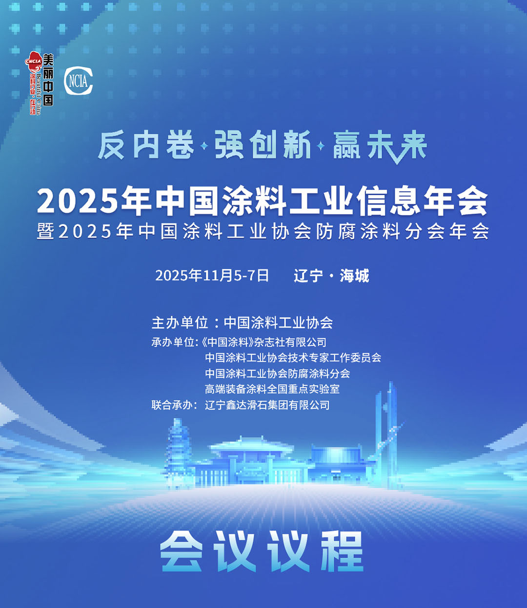 秋日杲杲,碩果盈枝。11月5–7日,2025年中國(guó)涂料工業(yè)信息年會(huì)暨2025年中國(guó)涂料工業(yè)協(xié)會(huì)防腐涂料分會(huì)年會(huì)在遼寧海城圓滿舉行。本次會(huì)議的召開(kāi),正值全國(guó)上下深入學(xué)習(xí)貫徹黨的二十屆四中全會(huì)精神、系統(tǒng)謀劃“十五五”時(shí)期發(fā)展的關(guān)鍵階段,其意義深遠(yuǎn)而重大。大會(huì)以“反內(nèi)卷·強(qiáng)創(chuàng)新·贏未來(lái)”為主題,來(lái)自國(guó)家部委領(lǐng)導(dǎo)、上下游產(chǎn)業(yè)鏈負(fù)責(zé)人、涂料領(lǐng)域資深專家、科研院所精英翹楚、涂料及相關(guān)行業(yè)企業(yè)代表近300人參會(huì)。會(huì)議嘉賓圍繞國(guó)家和行業(yè)最新信息發(fā)布,2025年前三季度涂料行業(yè)經(jīng)濟(jì)運(yùn)行情況梳理,工業(yè)防腐涂料、海洋涂料和其他涂料相關(guān)領(lǐng)域創(chuàng)新發(fā)展及最新成果探討,涂料供應(yīng)鏈產(chǎn)業(yè)鏈高效對(duì)接平臺(tái)搭建展開(kāi)深入交流,共同推進(jìn)涂料行業(yè)持續(xù)創(chuàng)新和技術(shù)進(jìn)步,走出“內(nèi)卷式”競(jìng)爭(zhēng)加劇困境,推動(dòng)行業(yè)實(shí)現(xiàn)綠色高質(zhì)量發(fā)展。