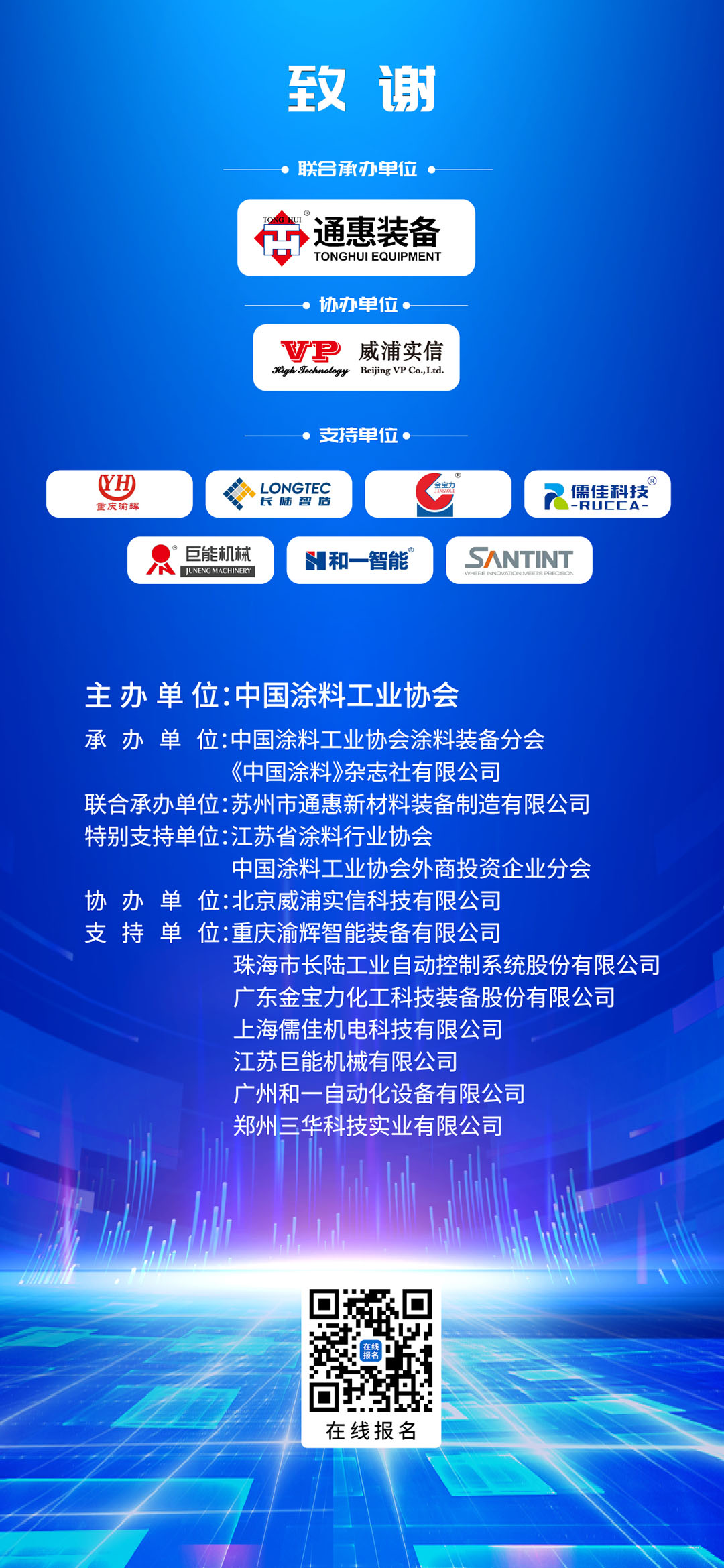 特別感謝本次會議的聯(lián)合承辦單位蘇州市通惠新材料裝備制造有限公司,協(xié)辦單位北京威浦實(shí)信科技有限公司,支持單位重慶渝輝智能裝備有限公司、珠海市長陸工業(yè)自動控制系統(tǒng)股份有限公司、廣東金寶力化工科技裝備股份有限公司、上海儒家機(jī)電科技有限公司、江蘇巨能機(jī)械有限公司、廣州和一自動化設(shè)備有限公司、鄭州三華科技實(shí)業(yè)有限公司的大力支持。